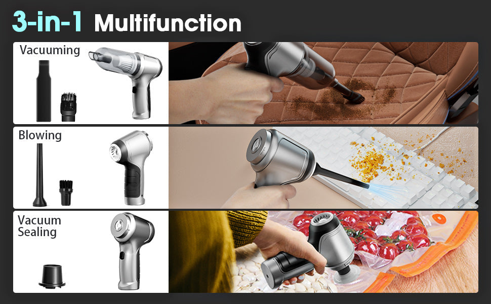 ✅ Mini Vacuum Cleaner – 16,000PA suction with multiple nozzles for sticky dust and tight spots.